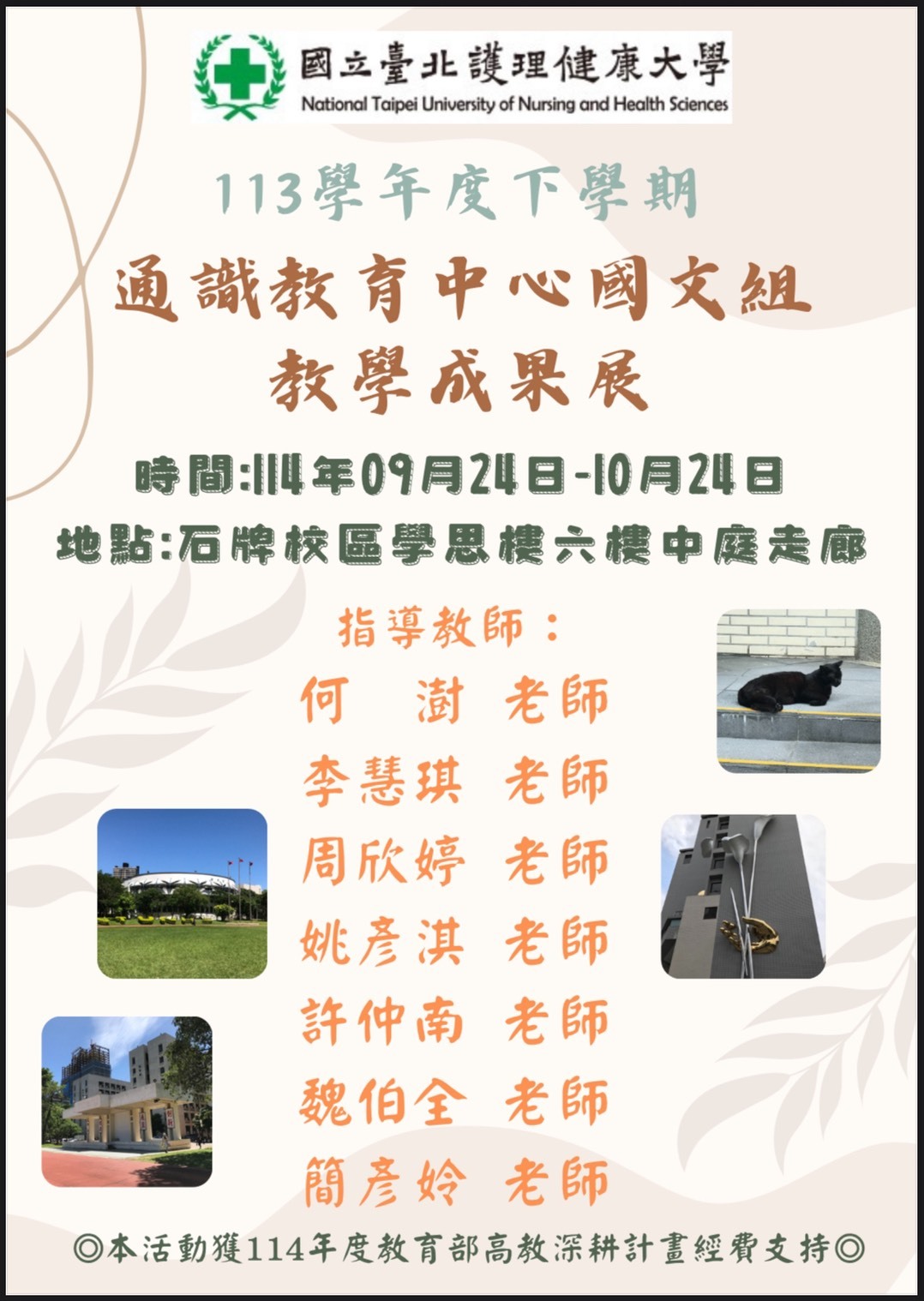 【活動公告】通識中心「113-2北 護大通識教育中心國文組教學成果展」