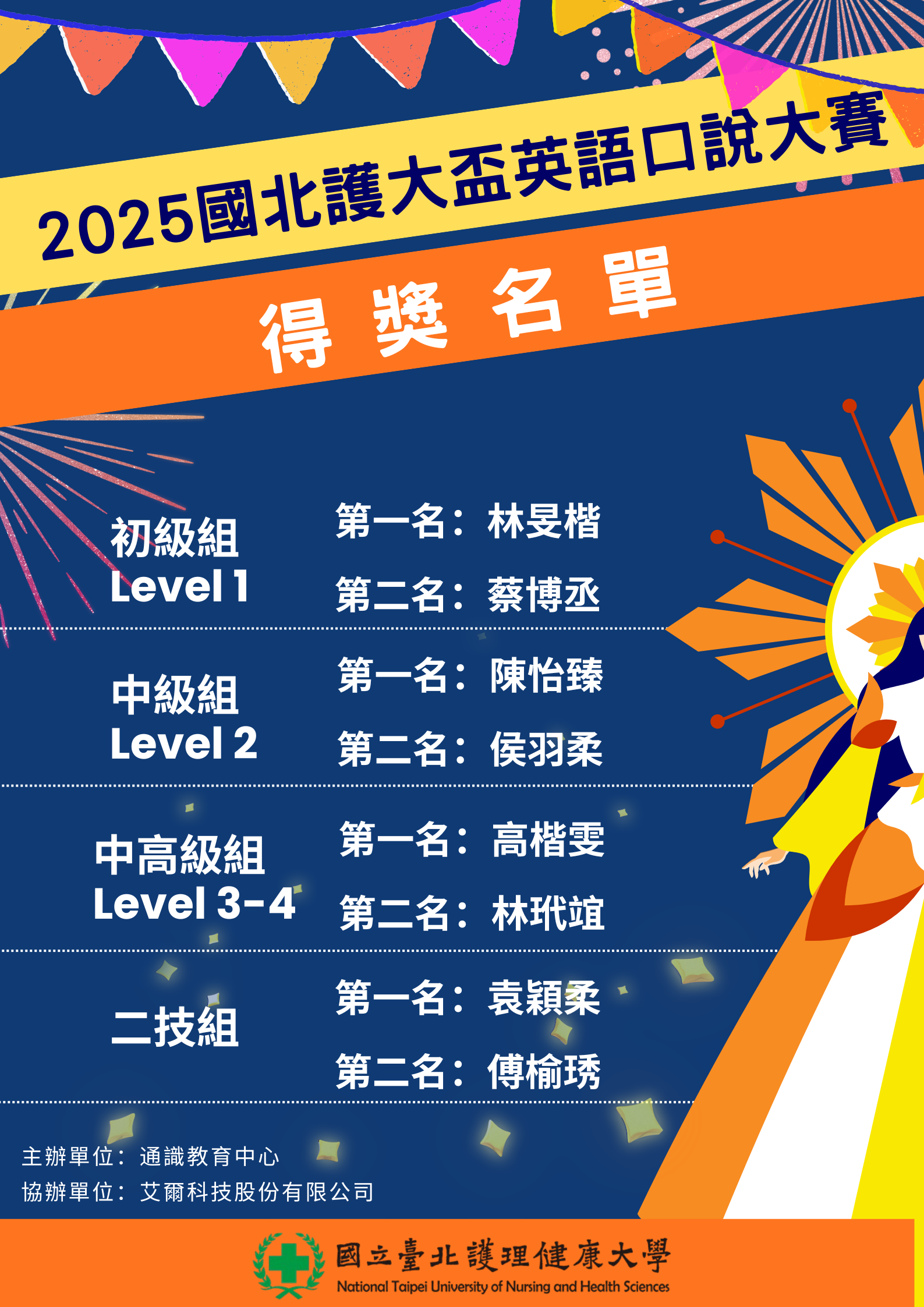 【競賽結果公告】2025國北護大盃英語口說比賽得獎名單